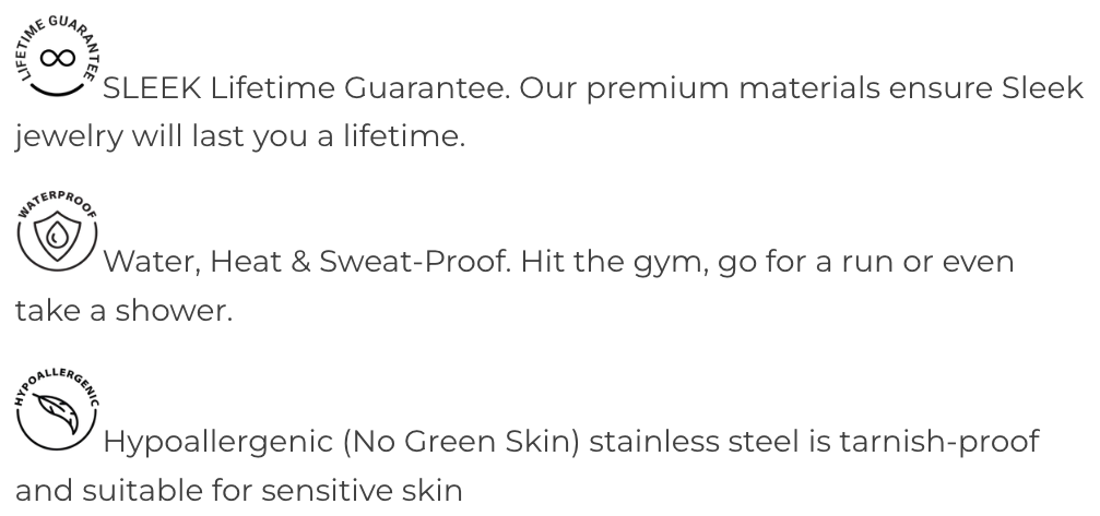 Sleek Fit Jewelry is committed to providing the highest standard of jewelry – which is why we offer a one-time Lifetime Warranty for all purchases of jewelry.