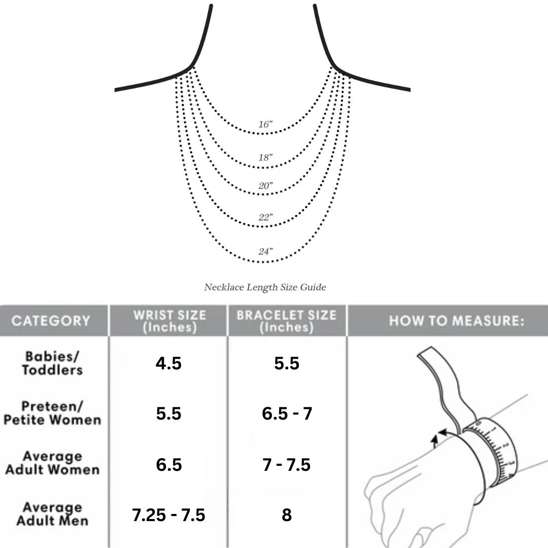 - Necklace Centimeters: 40.64cm + 5.59cm extender (included) or 10.16cm extender (add-on)